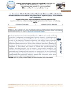 An Assessment of Socio-Cost Benefits of Electricity Reform and Privatisation in United Kingdom: Issues and the Way Forward for Nigerian Power Sector Reforms and Privatisation